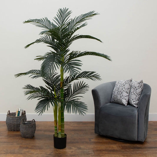 Artificial Golden Cane Palm Tree (6 Feet High) 3 TRUNKS 24 LEAVES