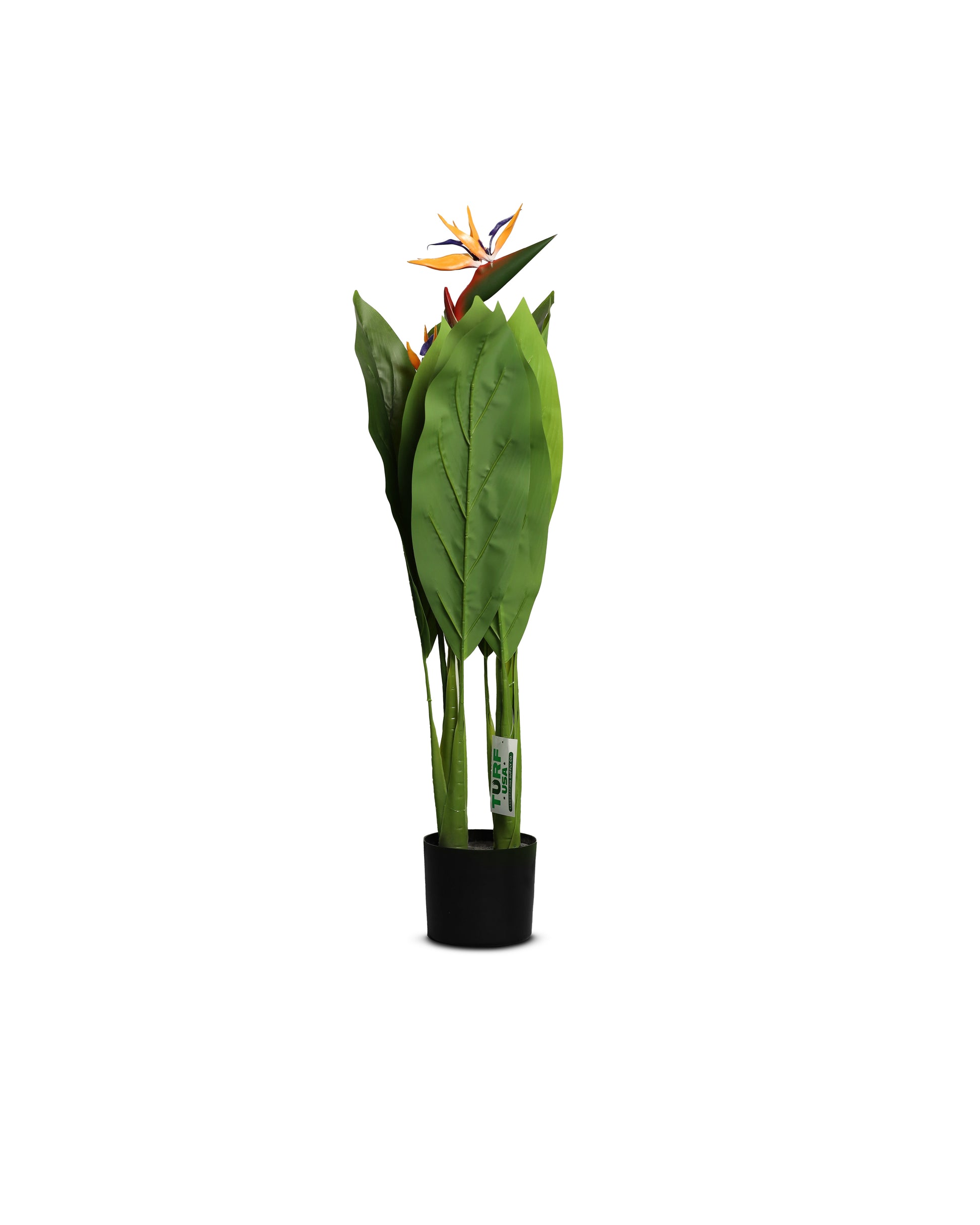 Add a touch of nature to your indoor space with this Beautiful Artificial Bird Of Paradise Plant by Turf USA. Standing at 3 Feet tall, this houseplant features 2 Trunks and 10 leaves and is made of durable PEVA material, with a sturdy cement and iron base for stability. Perfect for all occasions, this plant is ideal for home decor and can be used in any room of your house. The realistic design of this plant makes it hard to tell that it's not real, but it requires no maintenance and will always look fresh and vibrant. Purchase this houseplant now and enjoy the beauty of nature in your home without the hassle of upkeep.