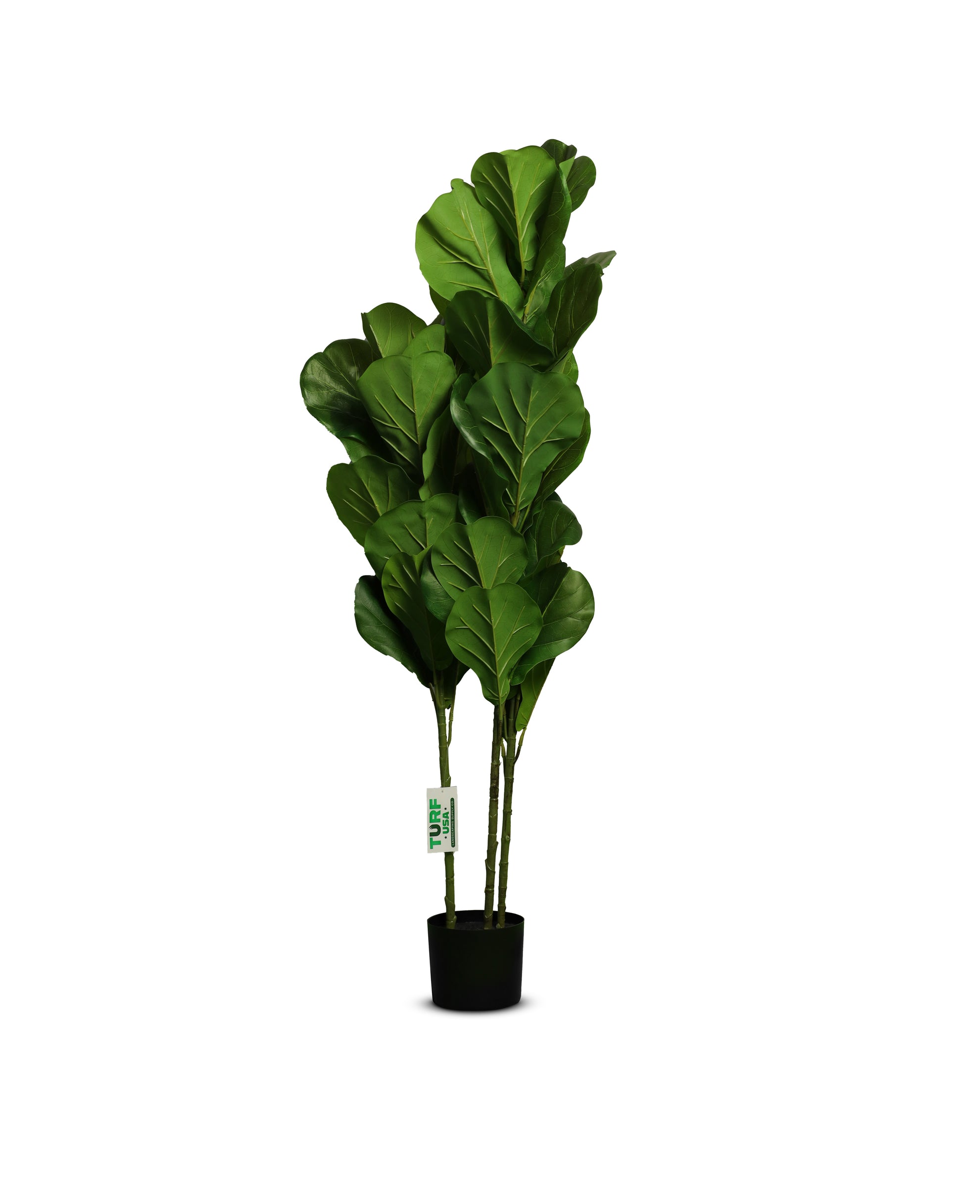 Add a touch of nature to your home or office with this Artificial Fiddle Leaf Fig Tree from Turf usa Standing at 4 feet tall with 3 Trunks and 44 leaves, this tree provides a lifelike appearance without the hassle of maintenance. The green color of the leaves complements any decor and the PEVA, cement, and iron materials ensure durability. Perfect for any occasion, this houseplant is a great addition to your floral decor.