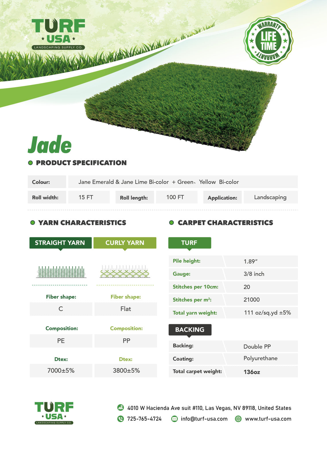 *Turf is sold by SQFT. Each roll is 15 ft WIDE.